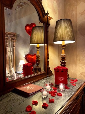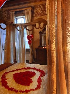 - Allestimento della suite con petali e candele